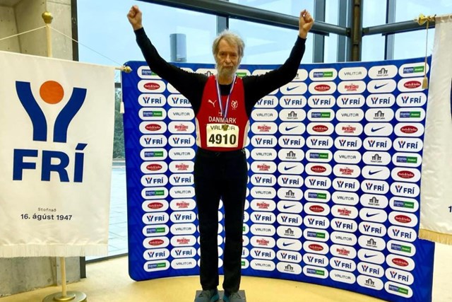 Jørgen Randløv Madsen vinder guld ved indendørs mastersmesterskaber 2023 i Reykjavik, Island (Foto: Slagelse Atletik DELTA)