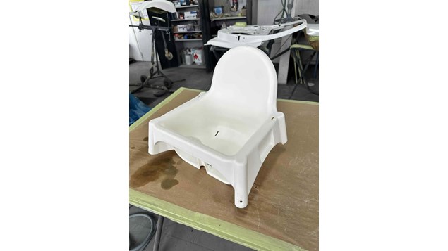 Normalt er det biler og fælge, der for en tur hos os….men denne gang var det en ikea højstol, der rullede ind i kabinen