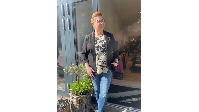 Only Carmakoma står bag både blazer, bluse og jeans