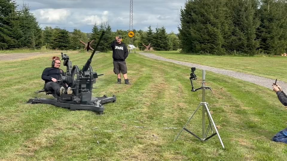 Military Days på Panzermuseum East 6-7 September. Der forberedes og der afprøves…her er Dansk Special Effekt Service som står for de vilde effekter under vores shows ved at “indskyde” en Tysk Flak 38. Pudsigt nok kom der under indskydningen en ældre 1 motors flyvemaskine cirklende over området Han blev heldigvis ikke ramt
