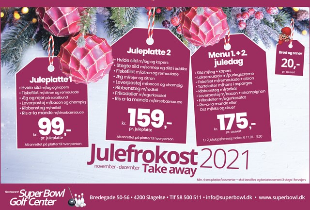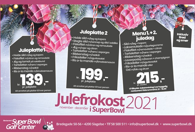 I Restaurant Superbowl & Golfcenter Slagelse tilbyder vi hver dag i november og december måned 2 forskellige juleplatter at vælge imellem.