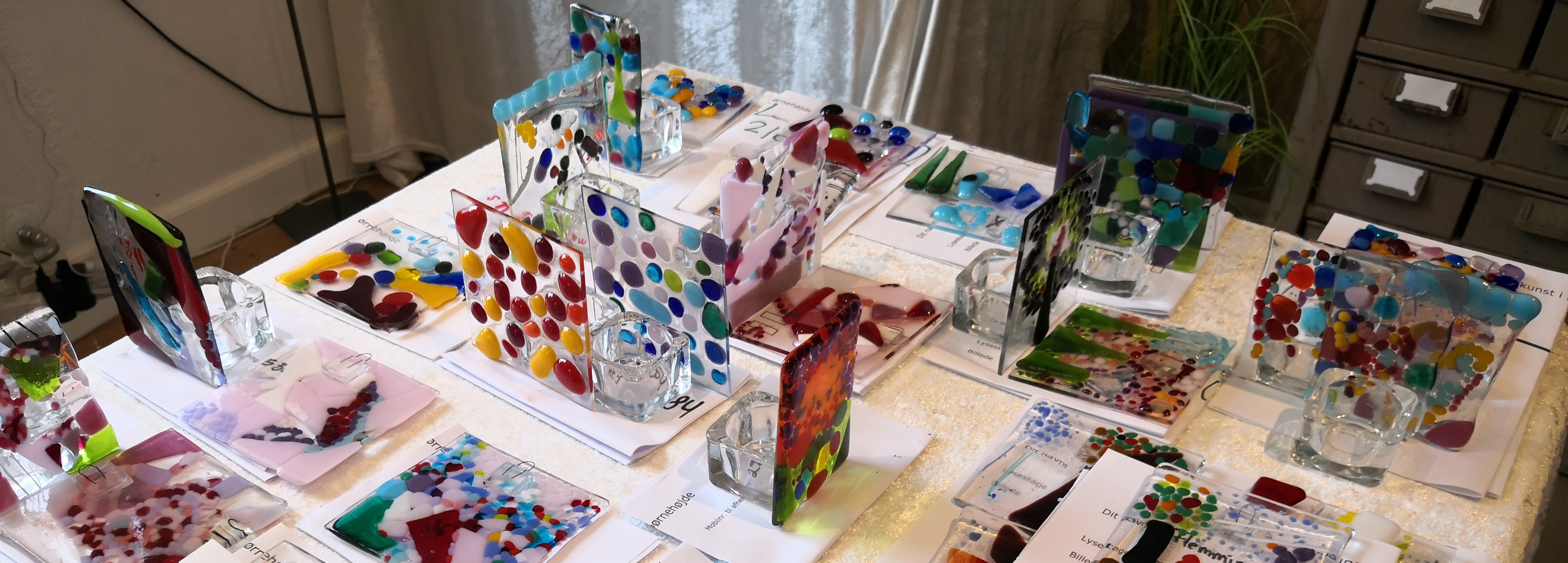 Det Lille Glashus byder på en spændende workshop, hvor både børn og voksne kan udfolde deres kreative evner. Deltagerne får mulighed for at skabe deres egne små kunstværker, der kan være alt fra billeder til lysestager. Små glasstykker sammensættes på en glasplade for at danne unikke og smukke kunstværker.